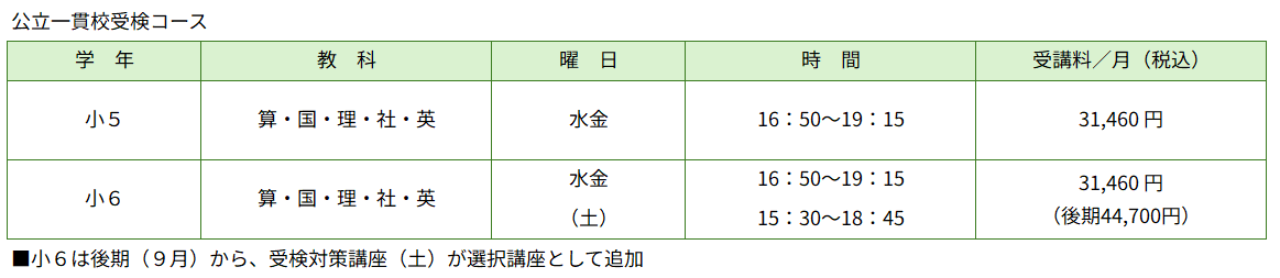 公立一貫校受検コース