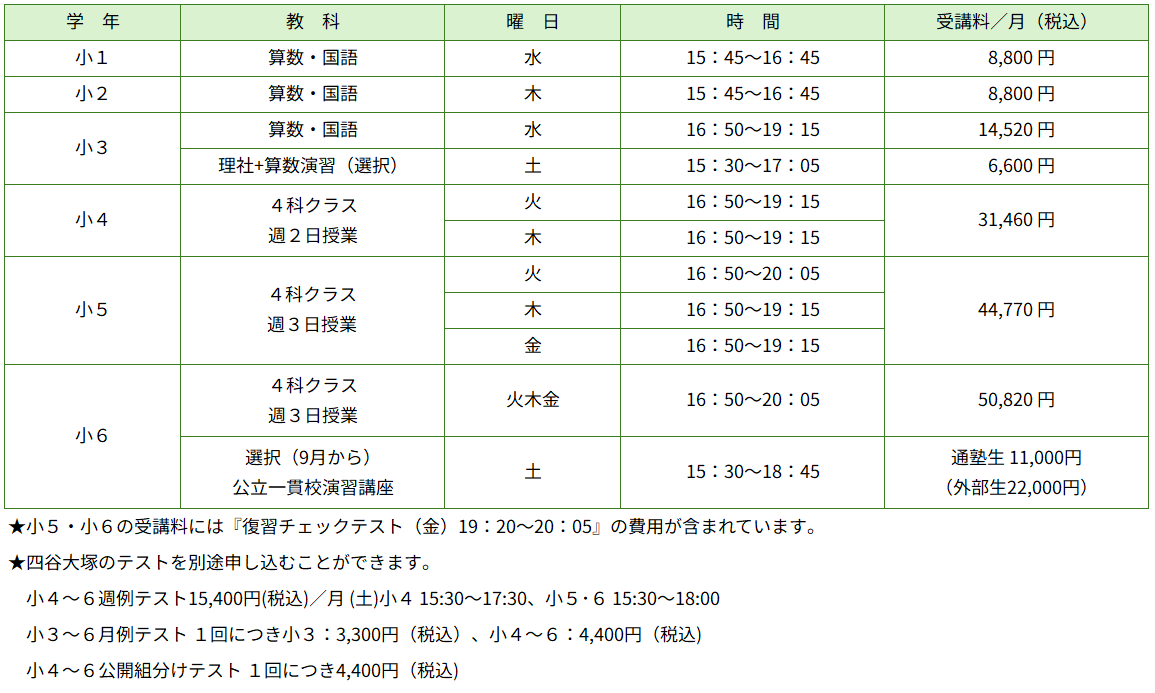 ■各コースとも入塾金 11,000円(税込)がかかります。