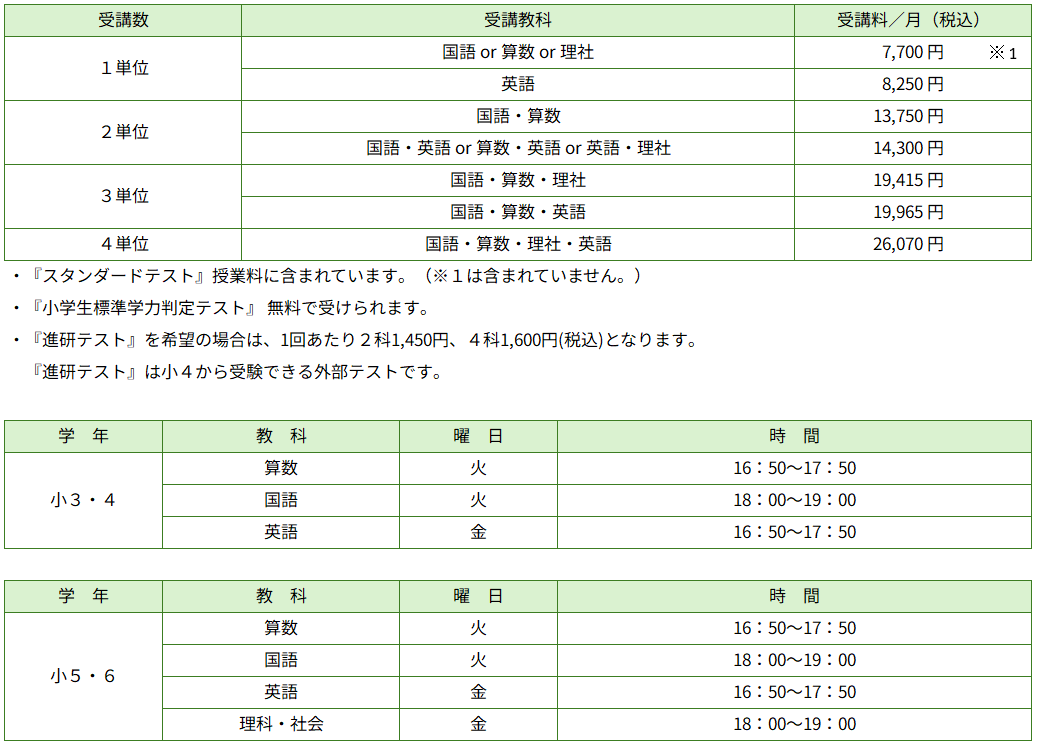 ■各コースとも入塾金 11,000円(税込)がかかります。