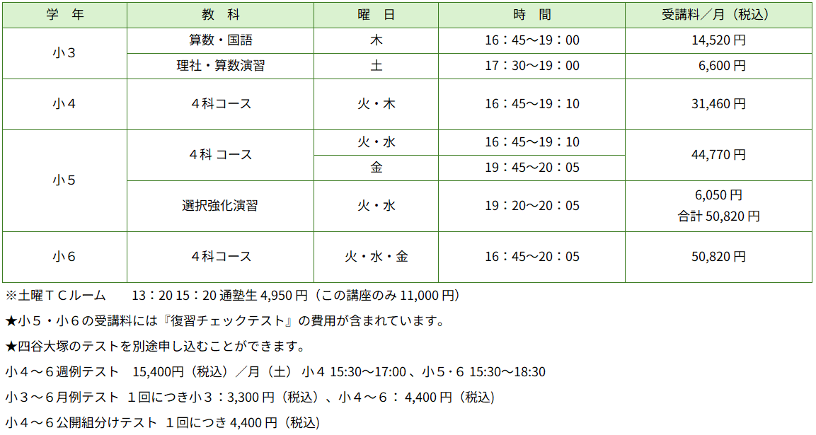 ■各コースとも入塾金 11,000円(税込)がかかります。
