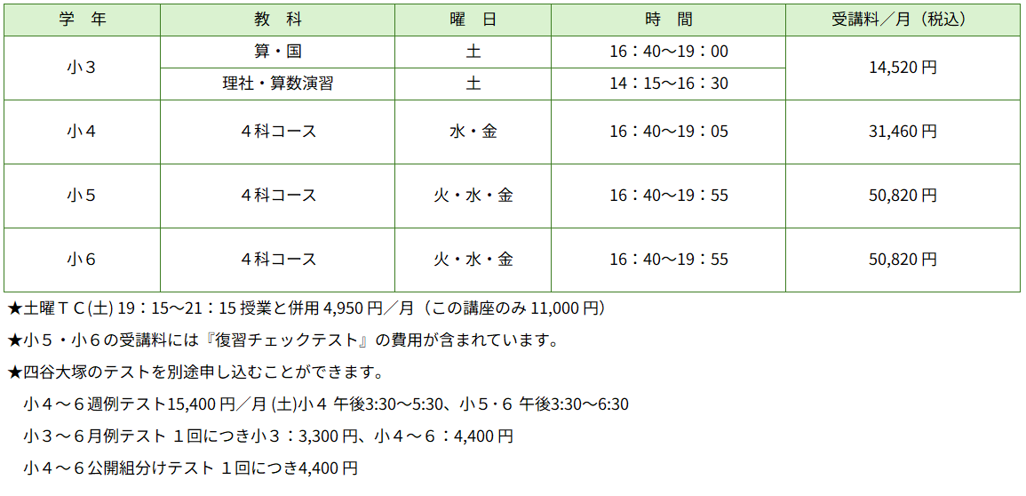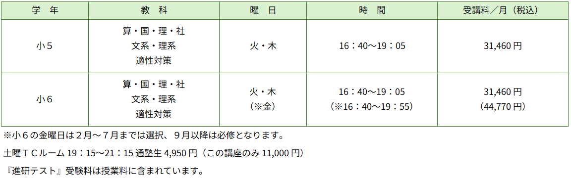 ■各コースとも入塾金 11,000円(税込)がかかります。
