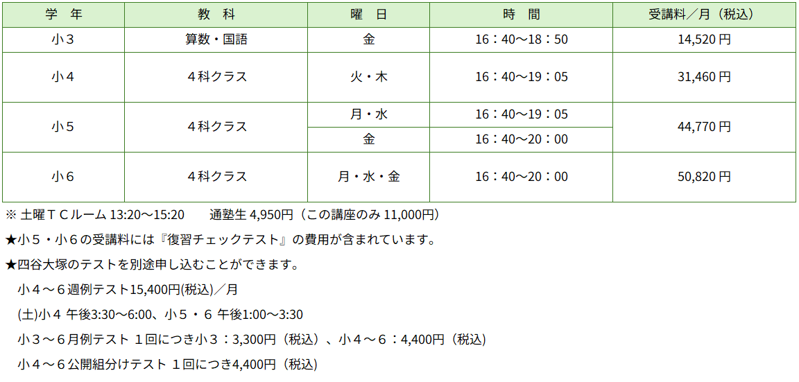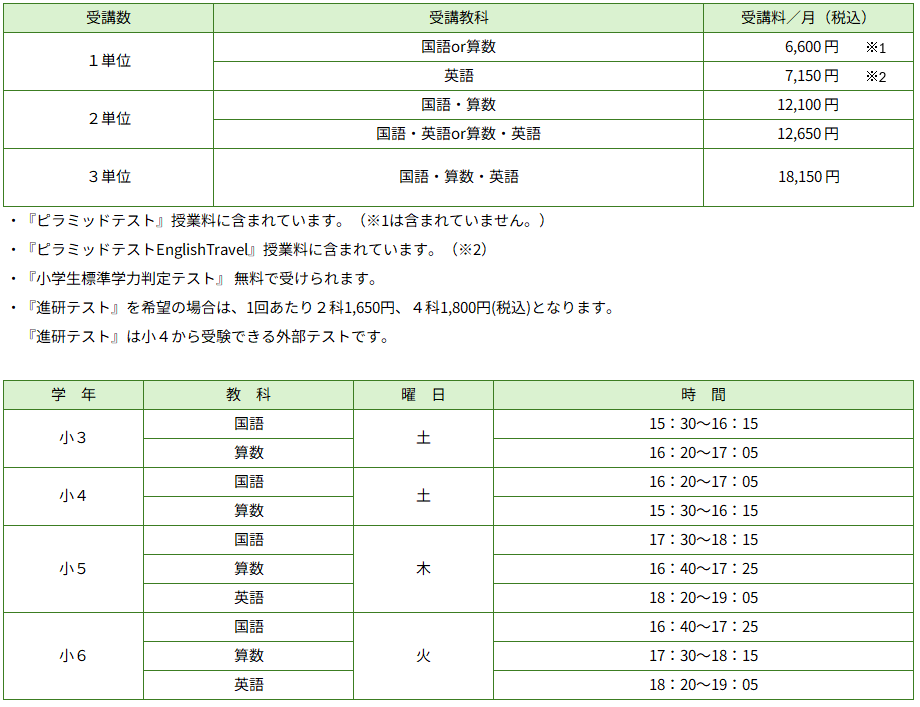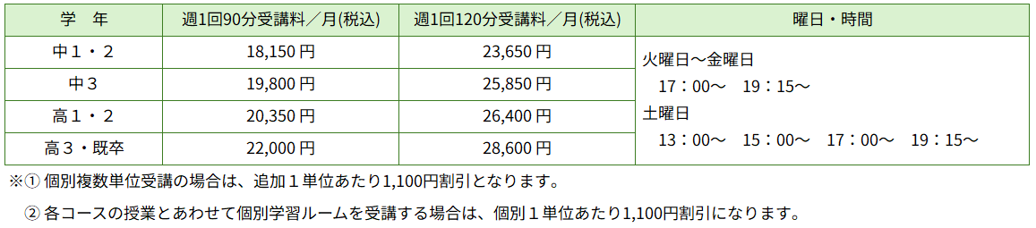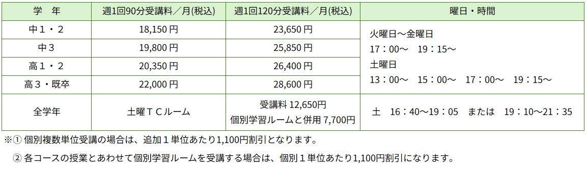 ■各コースとも入塾金 11,000円(税込)がかかります。