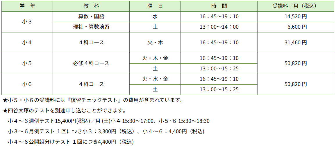 四谷大塚私国立中学受験コース