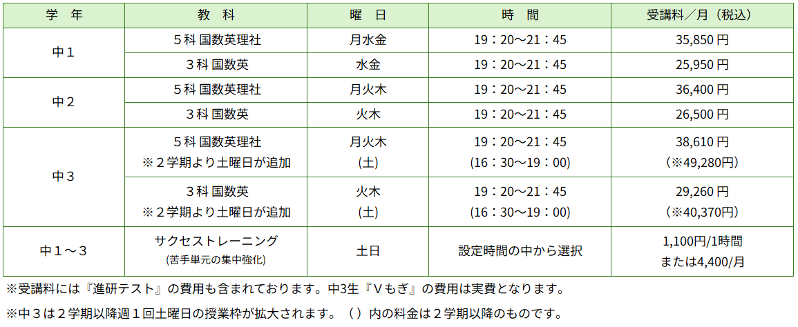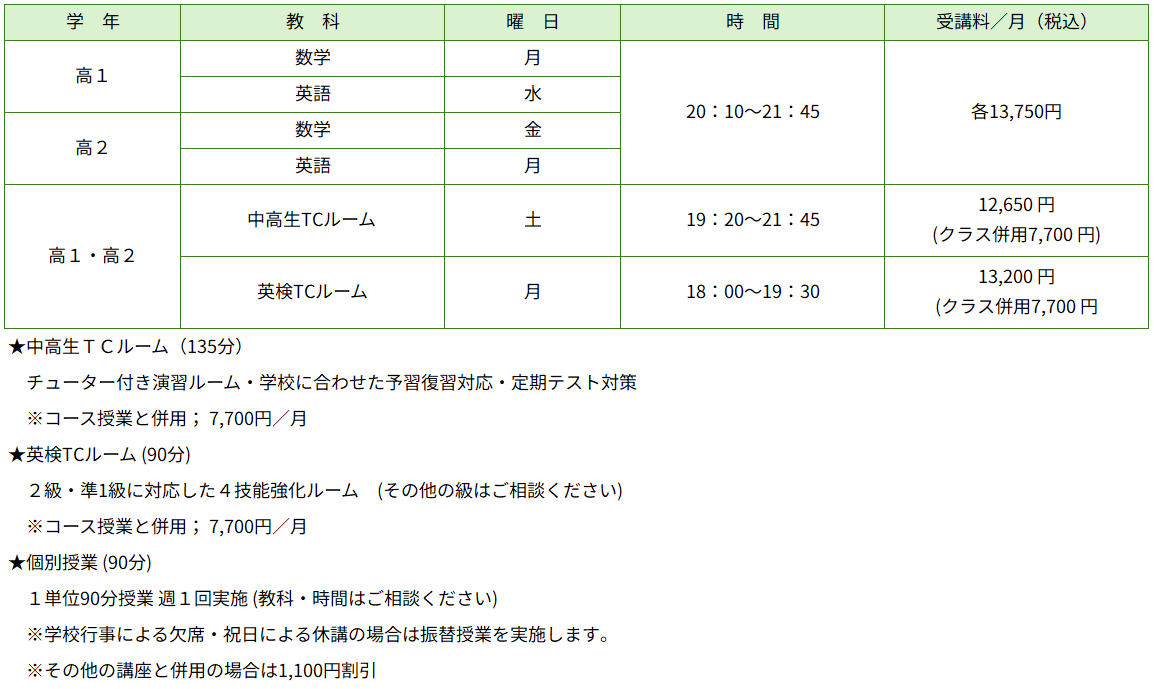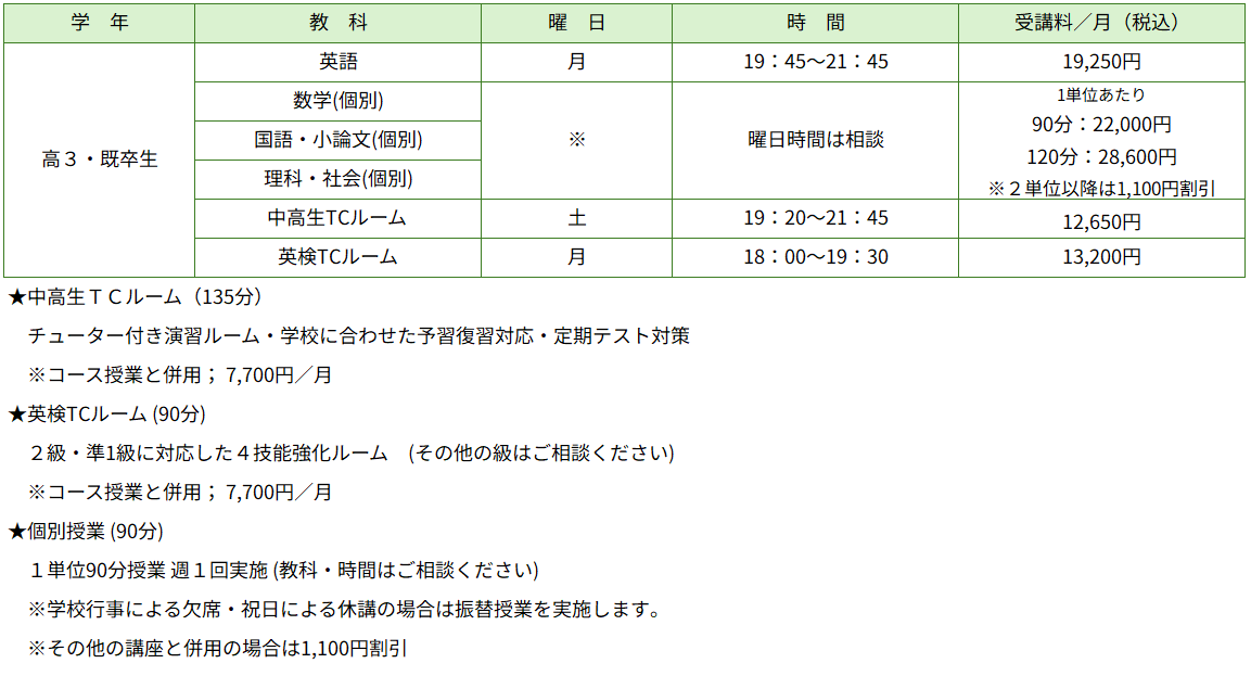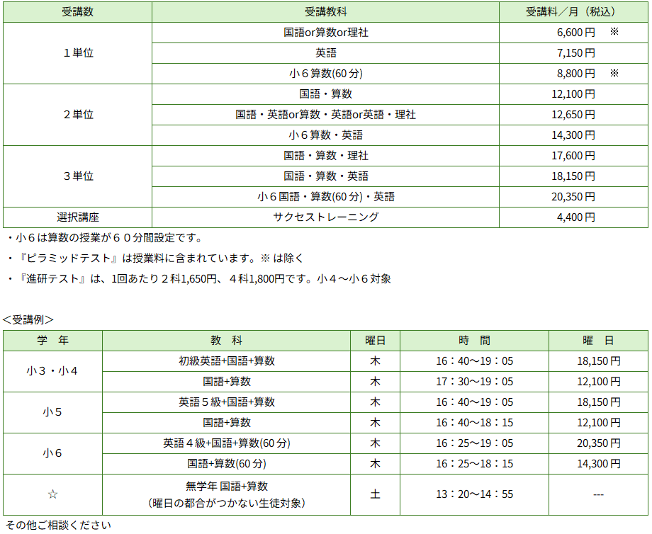 ■各コースとも入塾金 11,000円(税込)がかかります。