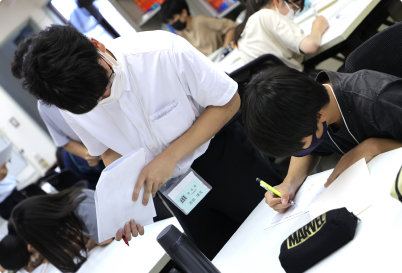 全員参加アクティブラーニング! 7名基準の少人数制クラスで、一人ひとりの様子を確認!双方向対話型の授業です。